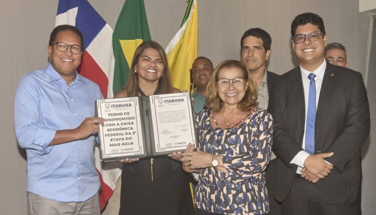 No final da tarde de hoje, dia 6, em uma solenidade bastante concorrida em seu gabinete, o prefeito de Itabuna, Augusto Castro (PSD), acompanhado da Primeira-dama Andréa Castro, do presidente da Empresa Municipal de Águas e Saneamento (EMASA), Ivan Maia, da secretária de Infraestrutura e Urbanismo, Sônia Fontes, e do superintende executivo de varejo da Caixa Econômica Federal (CEF), Lucas Ribeiro, assinou o Termo de Compromisso para a execução do Projeto Mais Água para a Cidade III.