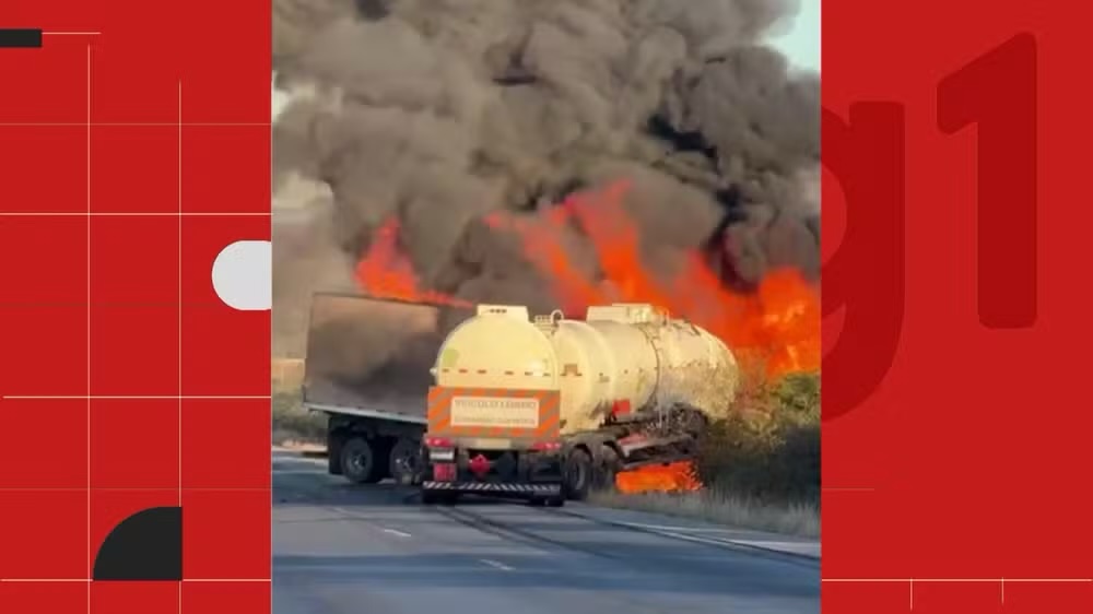 Acidente entre caminhão e carreta deixa mortos na Bahia; veículos pegaram fogo e pista foi totalmente interditada
