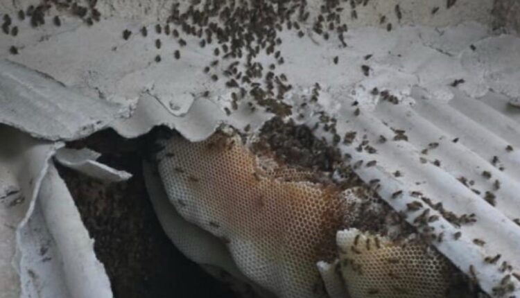 De acordo com moradores, o enxame estava alojado entre a telha e a laje do banheiro de uma residência. A estimativa é de que a colmeia abrigasse mais de 60 mil abelhas e estivesse no local há vários anos, sem que o risco fosse percebido.