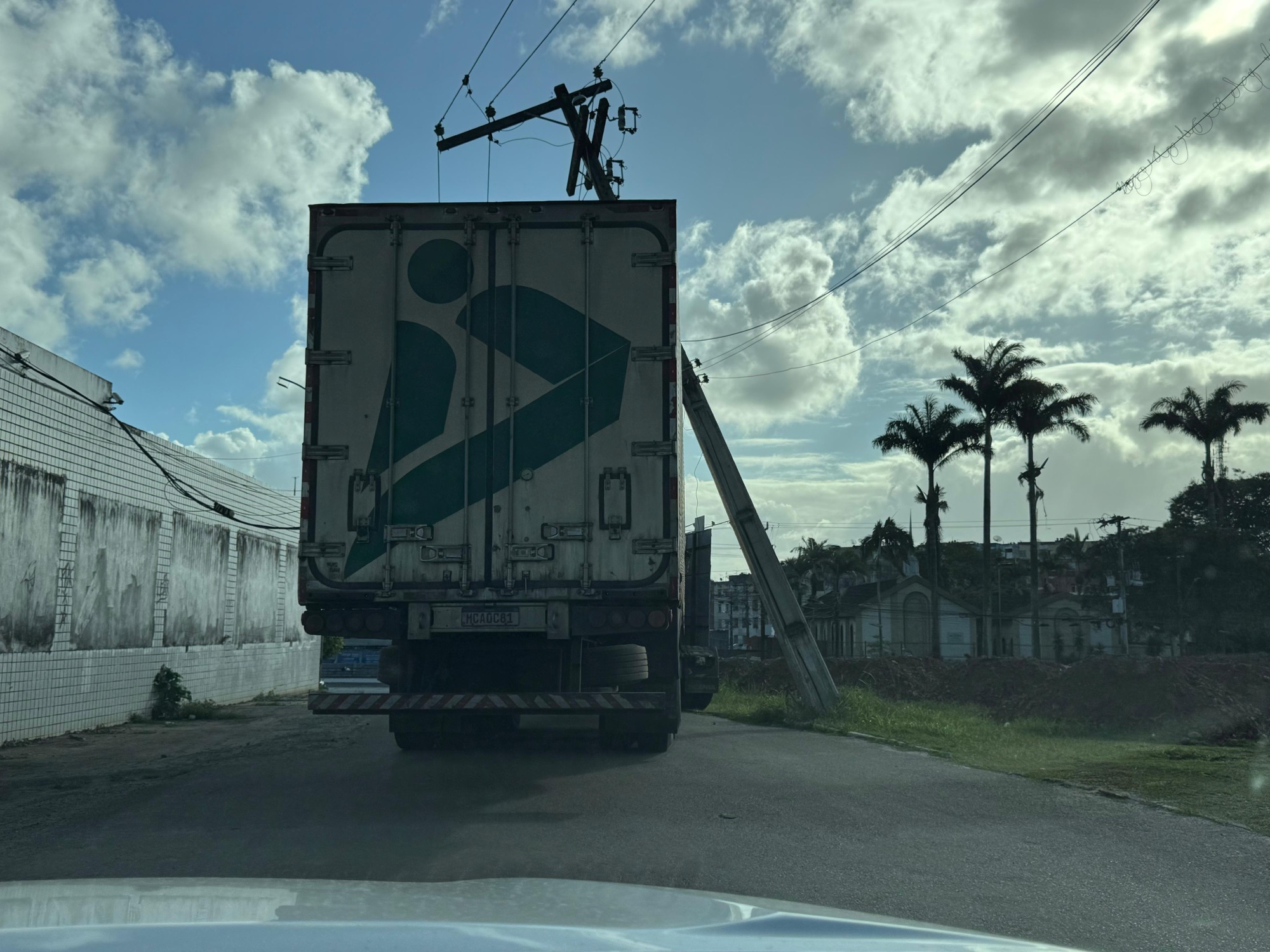 De acordo com relato do motorista, o poste caiu após o veículo encostar durante uma manobra. Apesar do impacto, não houve registro de feridos.
