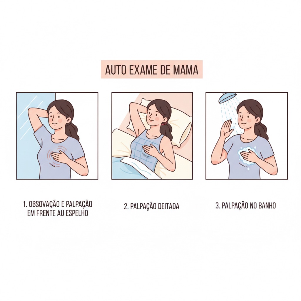 Fazer mamografia periódica, conforme faixa etária e histórico familiar; Realizar o autoexame das mamas mensalmente; Buscar atendimento médico imediato diante de qualquer sinal suspeito; Manter hábitos saudáveis, alimentação equilibrada, atividade física e controle do estresse; Incentivar outras mulheres a não adiar exames.