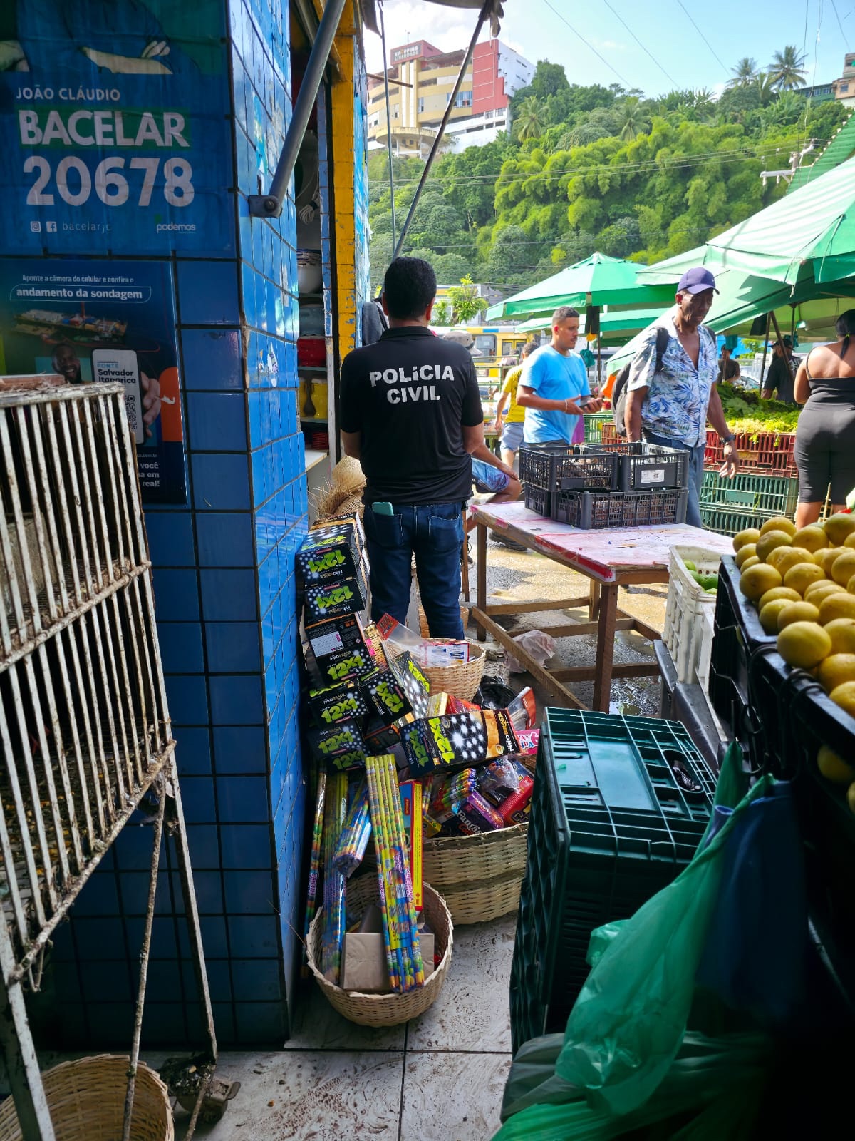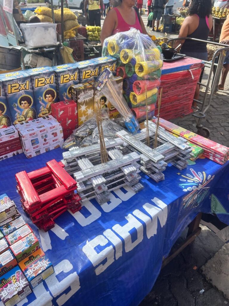 A Polícia Civil da Bahia, por meio da Coordenação de Fiscalização de Produtos Controlados (CFPC), executou nesta quarta-feira (18), a quarta fase da Operação Em Chamas 2025, que alcançou um balanço histórico de 2,5 milhões de unidades de fogos de artifício apreendidas em toda a Bahia. Este é o maior volume registrado desde a criação da operação em 2015. No quarto e último dia da operação, foram recolhidas cerca de 40 mil unidades de fogos ilegais para destruição. As fiscalizações ocorreram em quatro estabelecimentos na Feira de São Joaquim e em oito barracas na feira de fogos da Avenida Paralela, em Salvador.