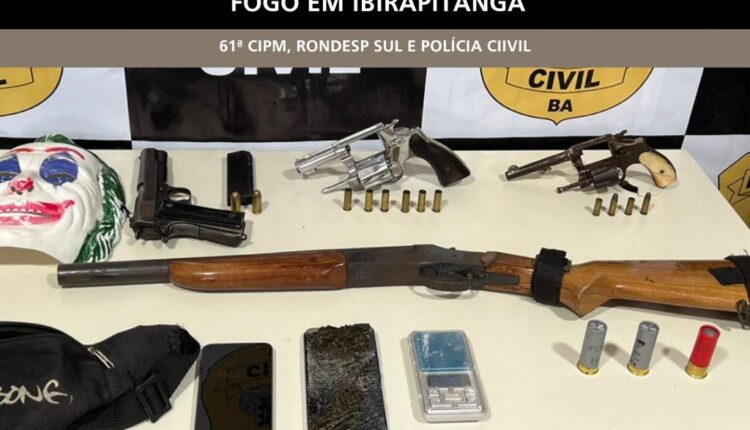 Na manhã desta quinta-feira (8), foi realizada uma operação conjunta entre a 61 ª CIPM, RONDESP SUL e Polícia Civil na cidade de Ibirapitanga com vistas a coibir tráfico de drogas e os recentes ataques de facções criminosas na localidade. As forças policiais patrulhavam no Bairro Novo da cidade quando avistaram 04 indivíduos ostentando armas de fogo, os quais passaram a efetuar disparos contra o efetivo. Após o confronto, os indivíduos foram alvejados e socorridos até o Hospital Municipal, onde evoluíram a óbito. As armas apreendidas utilizadas contra os policiais foram: 01 espingarda calibre 12 de marca Rossi; 01 pistola calibre .45 de marca Colt; 01 revolver calibre 38; 01 revolver calibre 32.
