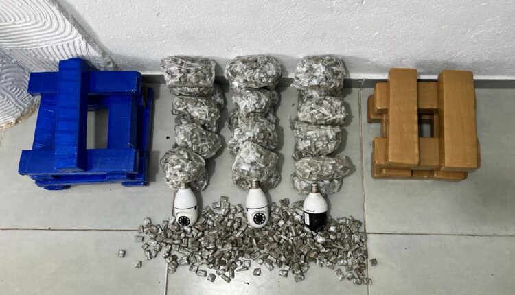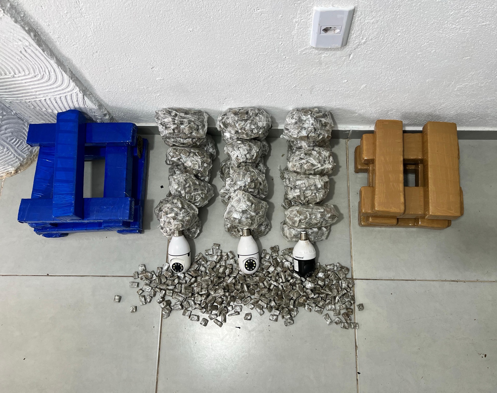 Durante a realização de ações de intensificação do patrulhamento na localidade conhecida como Bairro Novo, os militares avistaram um homem nas proximidades de um imóvel em construção que, ao perceber a presença dos agentes, fugiu. Após uma varredura na edificação, a equipe encontrou 2.800 porções de maconha prontas para revenda, além de 17 tabletes da erva, totalizando 21kg da droga, e câmeras clandestinas de videomonitoramento.