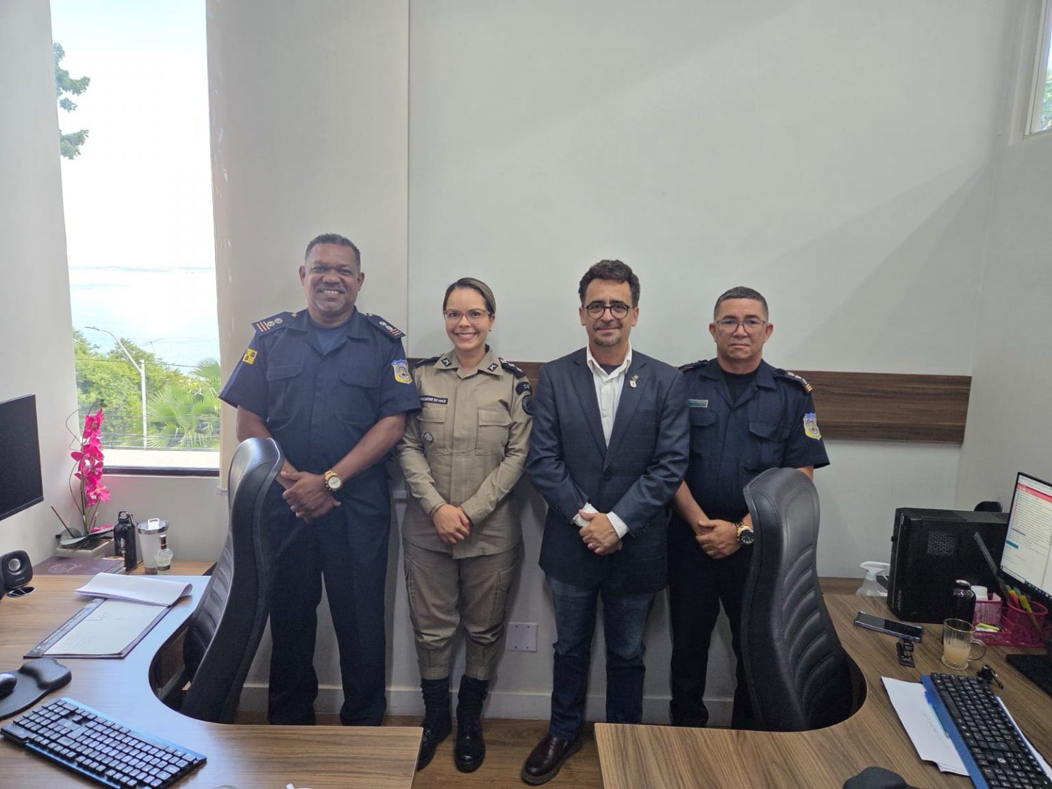Acompanhado do comandante da Guarda Civil Municipal, Inácio Pereira, e do subcomandante Valdir Santos, o titular da SESOP foi recebido pela capitã PM Karine, responsável pelo setor de convênios da bicentenária corporação militar. O encontro teve como destaque a formalização de iniciativas estratégicas voltadas à valorização e qualificação da Guarda Civil Municipal.