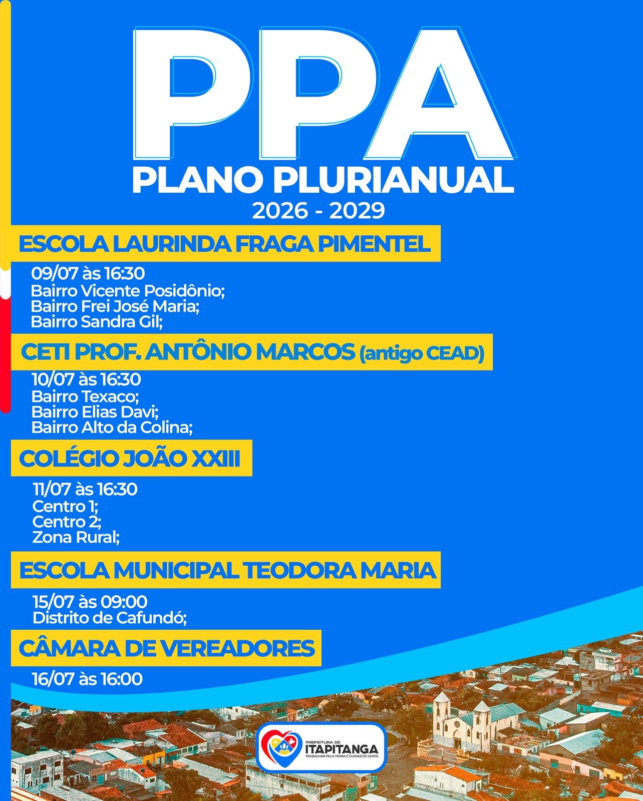 Cronograma das escutas públicas do PPA 2026/2029: