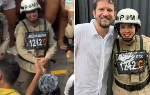 A cena aconteceu no sábado (1º) durante a “Pipoca da Fantasia”, comandada pelo cantor no Circuito Osmar (Campo Grande). Lotada no 15º Batalhão em Itabuna e integrante da Companhia de Emprego Tático Operacional (CETO), Carol fazia parte da equipe de reforço ao policiamento no evento.