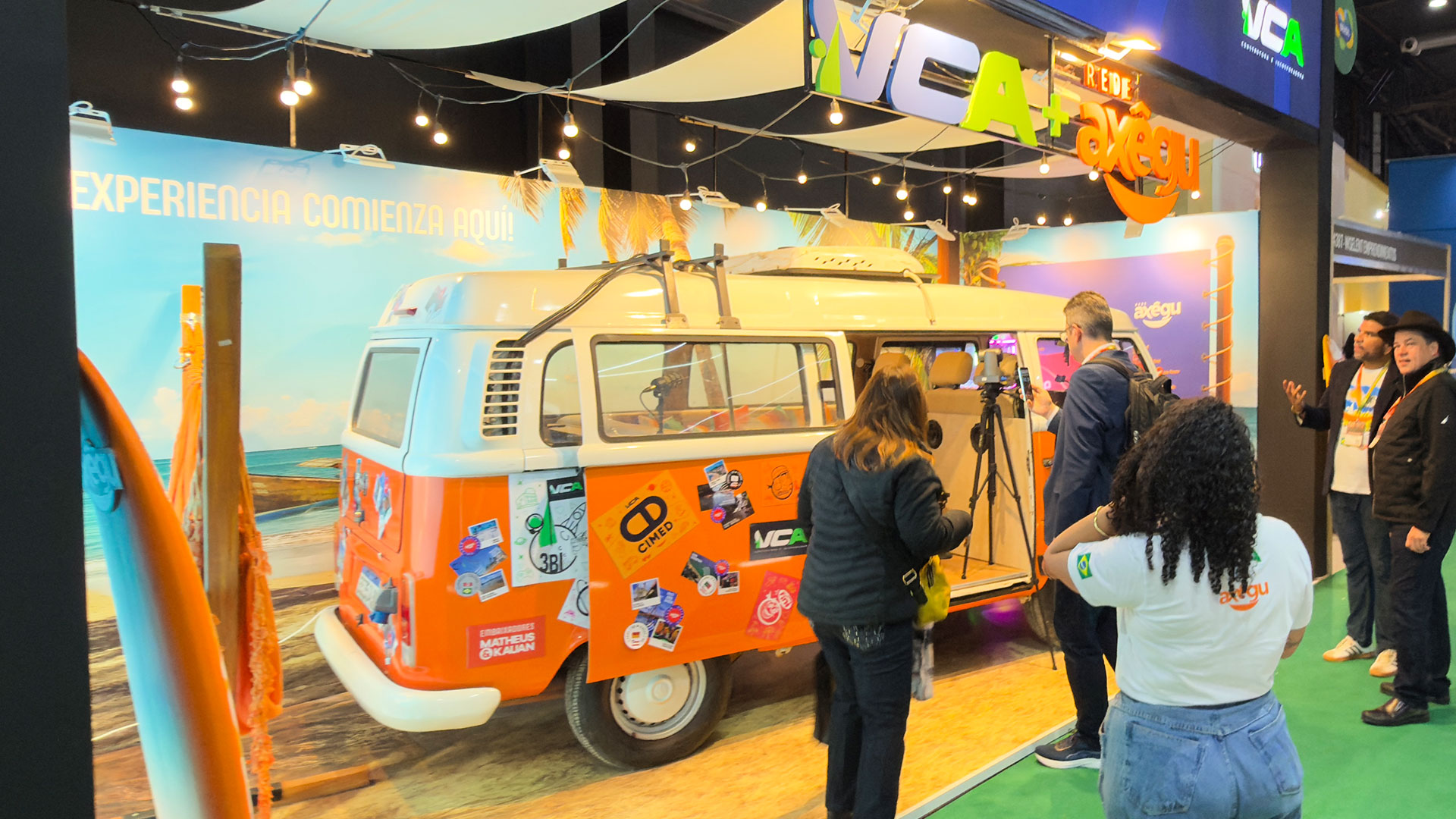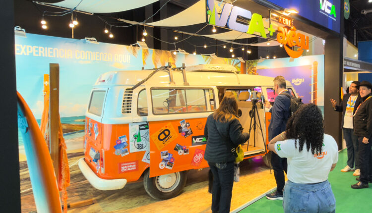 O estande da VCA e da Axêgu reforça esse conceito com detalhes que encantam: a Kombi cenográfica, as redes de descanso e a realidade virtual criam uma atmosfera de imersão no modo de viver da Bahia.